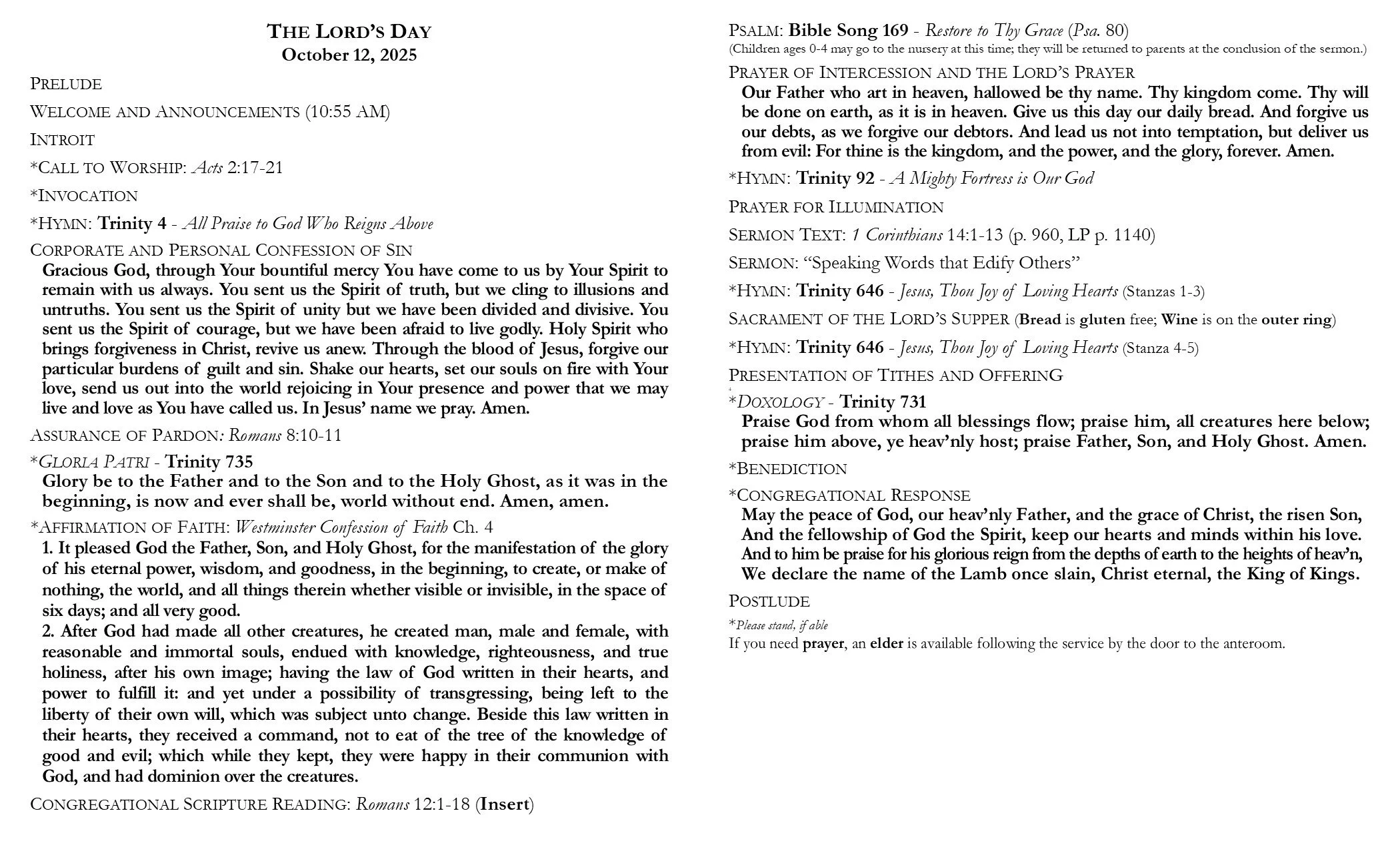 the lord's day worship (10:55 AM) - 10/12/25